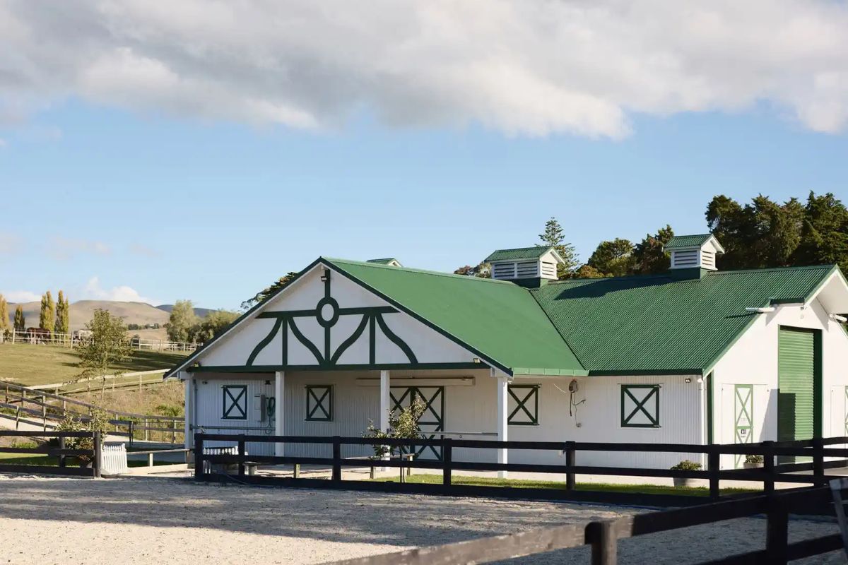 • The roof, finished in Permanent Green, helps the structure blend beautifully with the surrounding paddocks