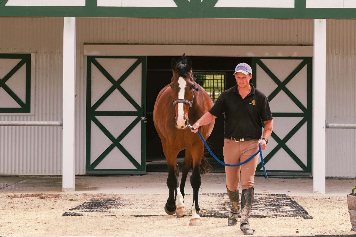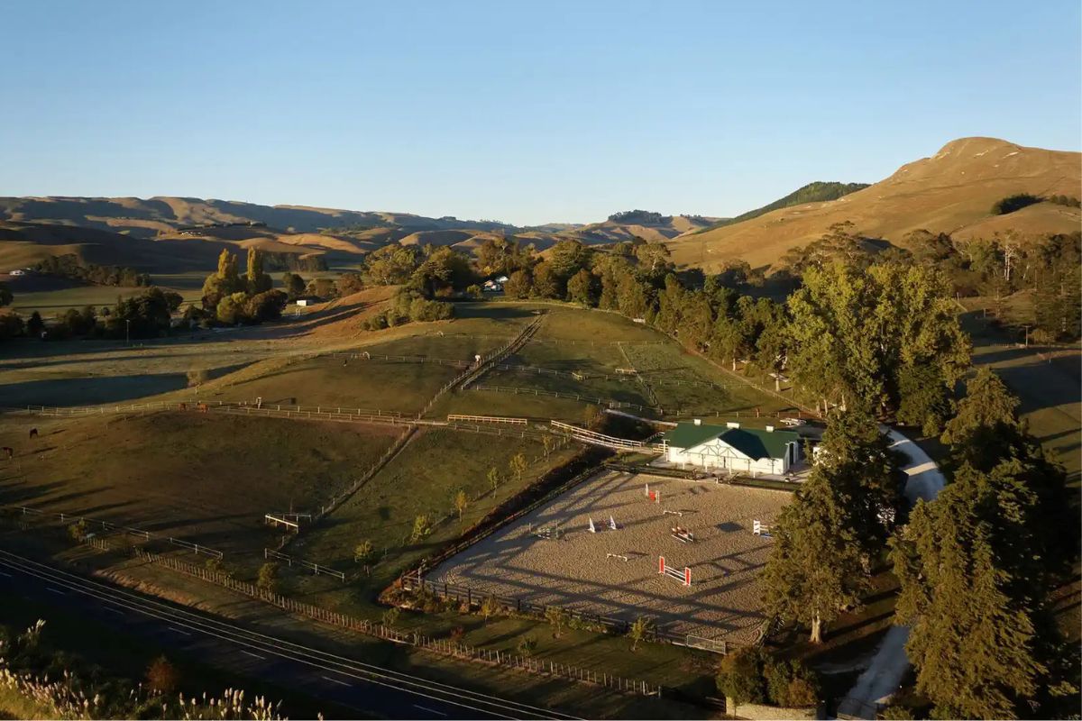 • A bespoke “Glen Aros” motif is integrated into the port cochere, visually tying the equine structure back to the architectural identity of the estate
